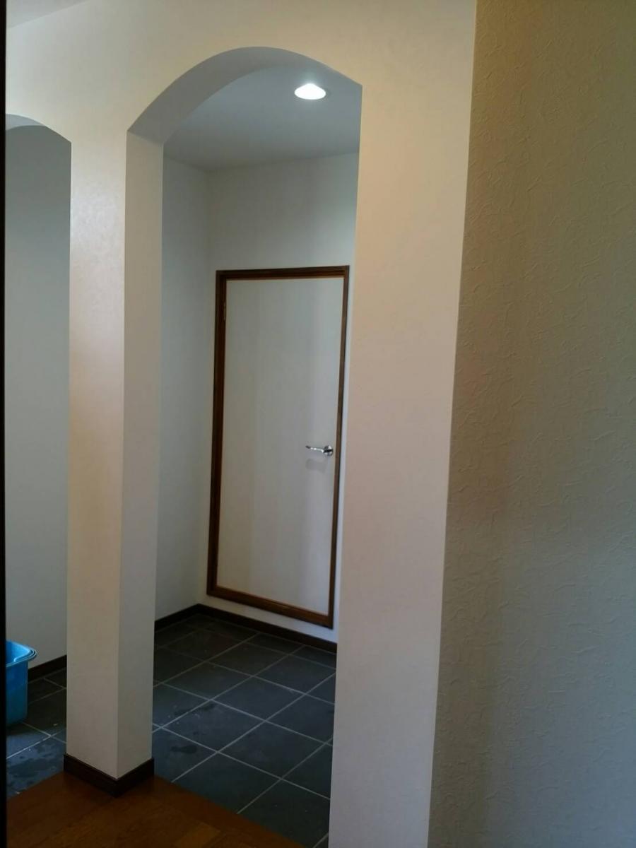 S様邸改修工事 その1 4月からのリノベーションクラスの改修工事が、7月完成いたしました。 施主様より、ビフォーの掲載はNGとのことで、アフターのみ・・ 劇的なビフォーアフターには、施主様にもたいへん満足していただきました。 ギャラリー 玄関空間は、土間部分をL字にし、来客動線と家族動線とわけています。シューズクロークは以前からお使いのもののサイズを確認して配置しました。 リビングからキッチン。 キッチンは、対面式でありながら、リビングから見えすぎない配慮。カウンター下は、散らかりがちな、雑誌などの造作マガジンラック 階段の壁面を利用して、壁かけテレビと下部のオーディオスペース 実は、階段の反対側は、玄関ホールの収納としても無駄なく利用しています。