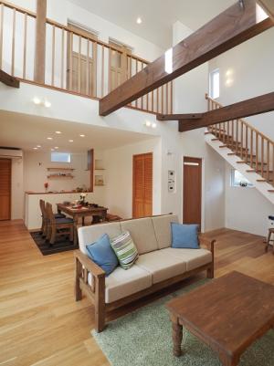自然素材いっぱいの「中2階」のある家